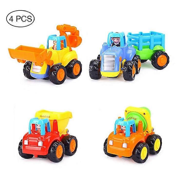 4 pieces of children's car toy set, tractor bulldozer, mixer truck and dump truck pull back truck