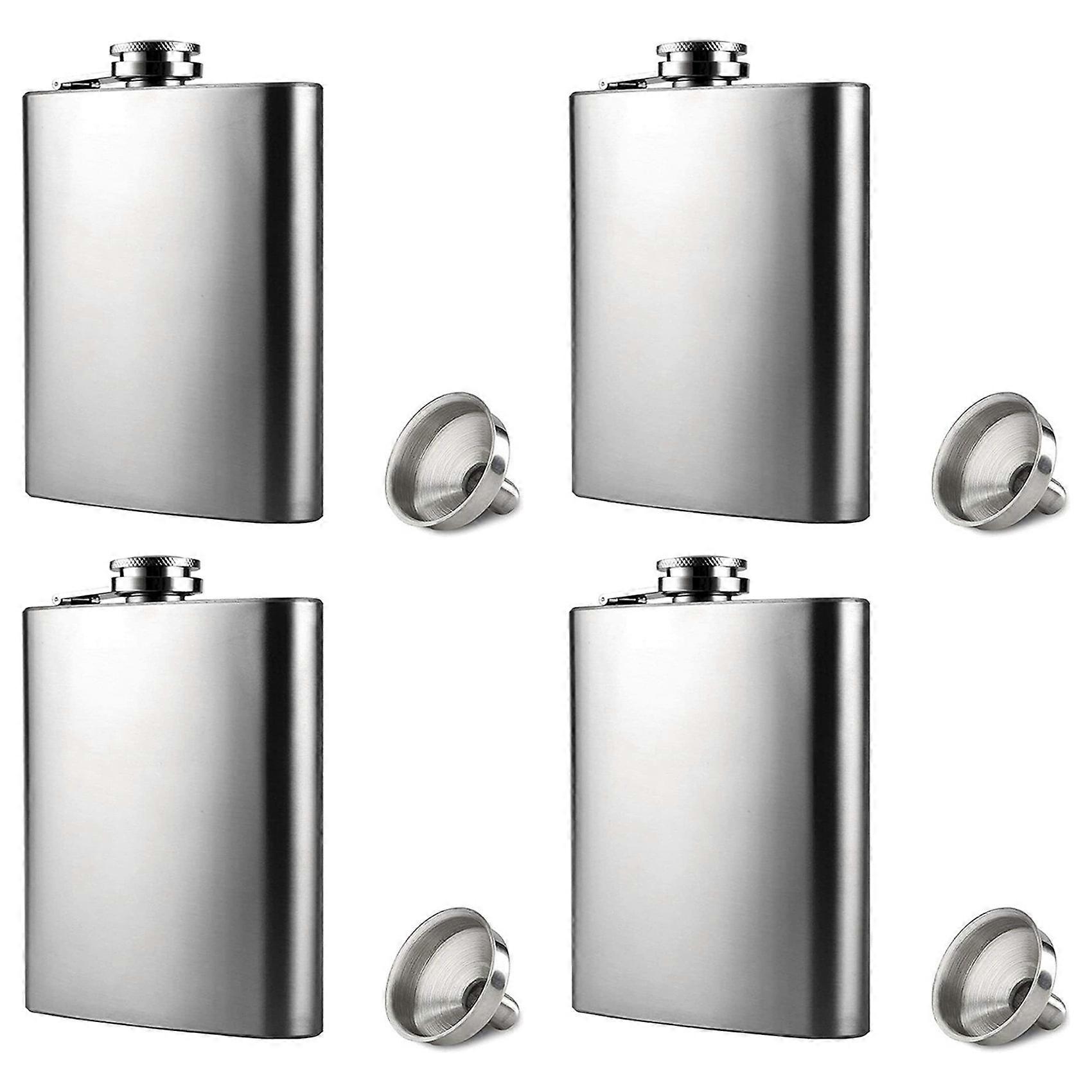 4X Hip Flask with Funnel, 4 Oz Stainless Steel Whiskey Flask 100% Leak Proof, Portable Pocket Hip Flask for Men