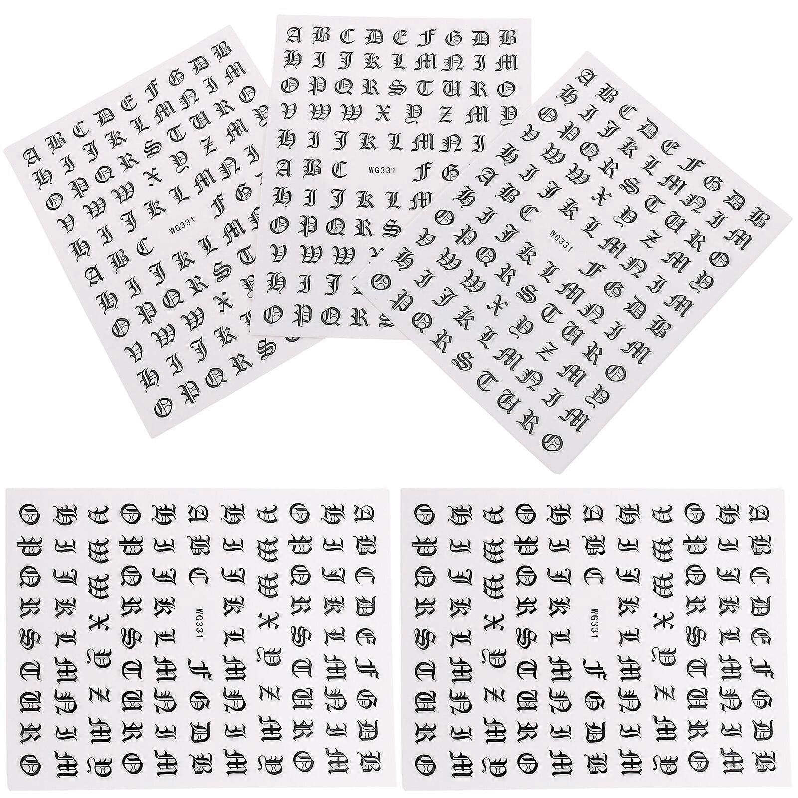 5 Sheets of Manicure Stickers Decals Self-Adhesive Alphabet Nail Stickers Nail Accessories