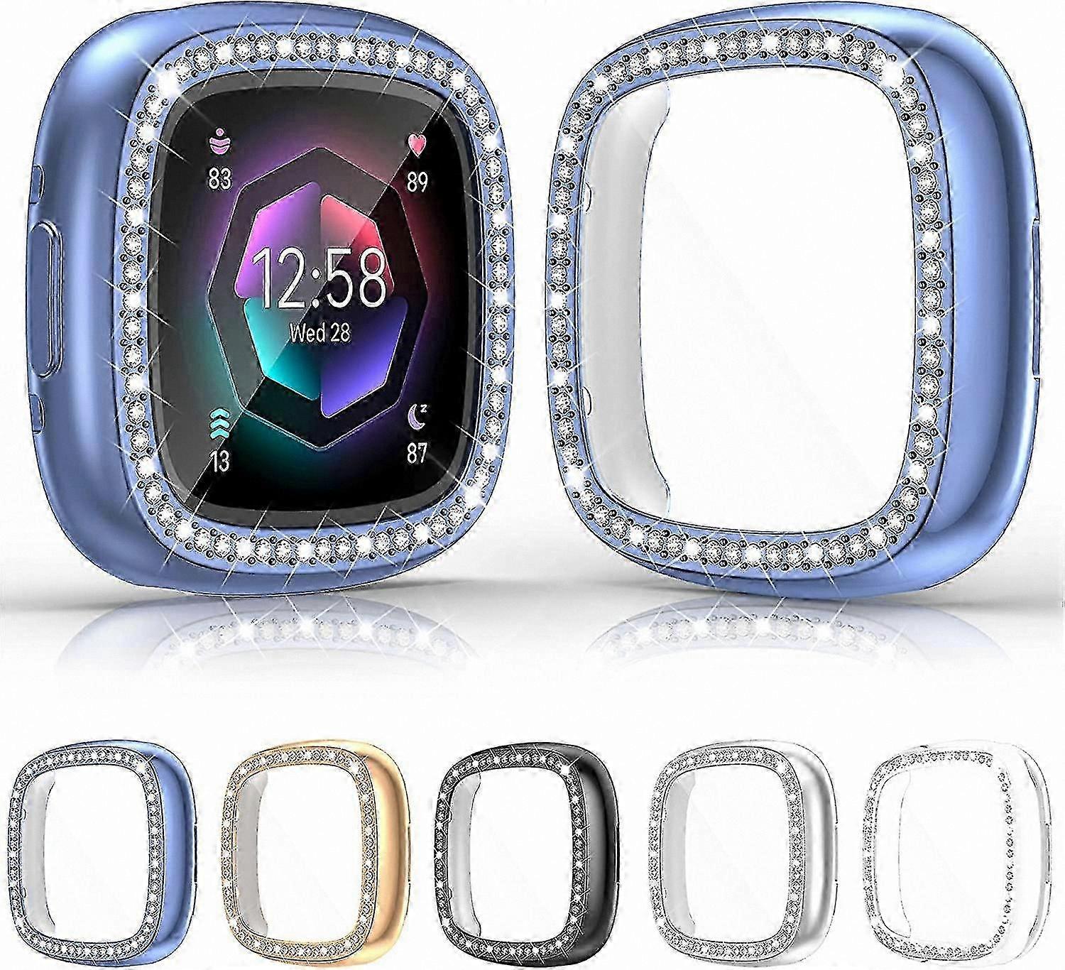 5-Pack Soft TPU Bumper Case with Glitter Diamonds for Versa 4 & Sense 2 Fitness Trackers Protector Cover