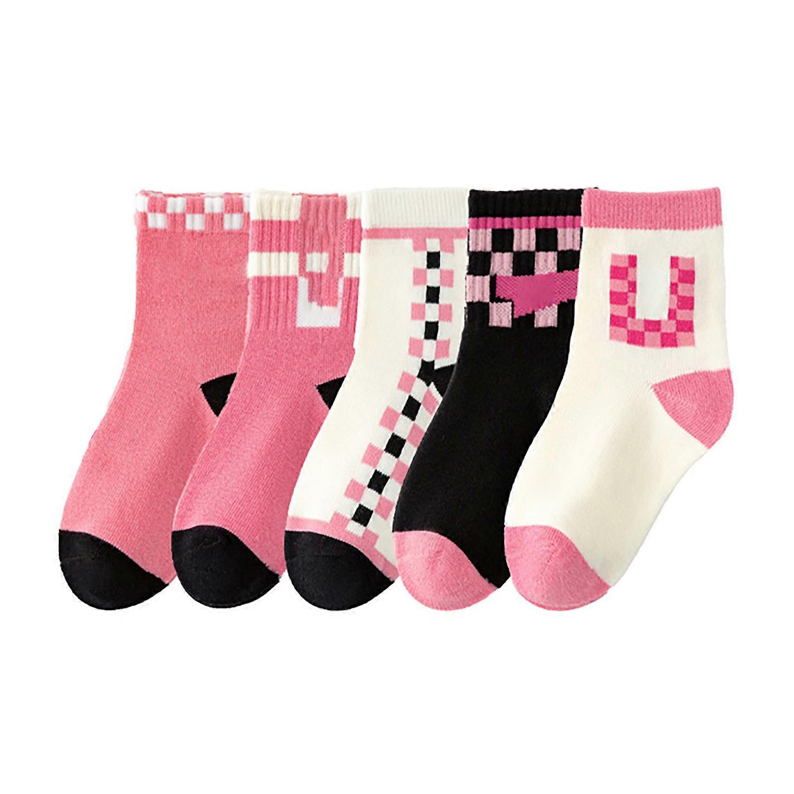 5 Pairs Girls Mid Calf Cute Checkerboard Pattern Soft Kids Cotton Crew Socks Autumn Winter S for 1‑3 Years Old