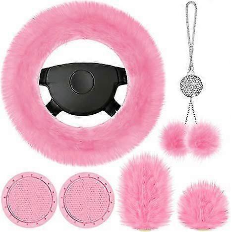 6 Pieces Fluffy Car Accessories Set Fluffy Steering Wheel Cover Soft Fuzz Handbrake Cover Gear Shift Cover Bling Car Mirror Fuzz Car Decoration 2 Piec