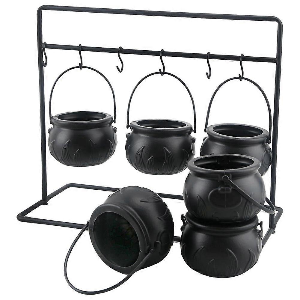 6Pcs Halloween Witch Cauldron Candy Bowl Cauldron Serving Bowls with Halloween Cauldron on Rack and 6Pcs Hook