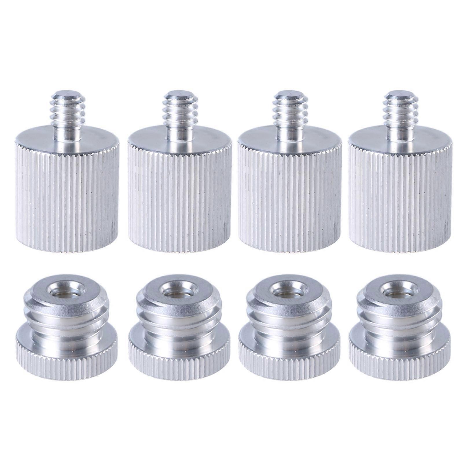 Features: 1/4" to 5/8" Adapter is an essential tool for professionals, ensuring seamless connectivity between levels and tripods with different thread sizes. Crafted from quality aluminum alloy, this adapter resists wear and tear, providing performances in demanding work environments. For constructions workers, surveyors, and engineers, this adapter is designed to facilitate precision measurements and alignments in various projects. Whether on a constructions site or in a home renovation, the tripod adapter allows for quick and easy attachment of tools to tripods for enhanced stability and accuracy. Simplify your workflow with this convenient two pack of tripod adapters, ensuring you always have a spare at hand for uninterrupted productivity on any job. Specifications: Material: Aluminum Alloy Size: About. 18x26mm/0.71x1.02in, 18x13.5mm/0.71x0.53in Type: 4Pcs/8Pcs Package Includes: Package 1: 4pcs Screw Adapter Package 2: 8pcs Screw Adapter note: Please allow 1-2cm errors due to manual measurement. Due to difference between different monitors, the picture may not reflect the item actual color.