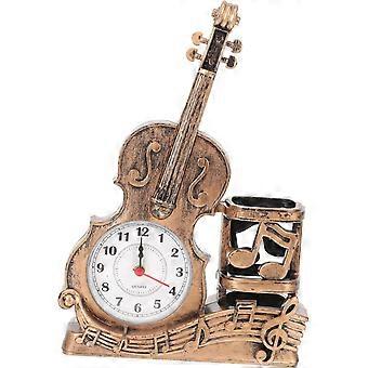 Alarm Clock Bedroom Alarm Clock Iron Pencil Holder Wake up Alarm Clock Desktop Violin Table Clock