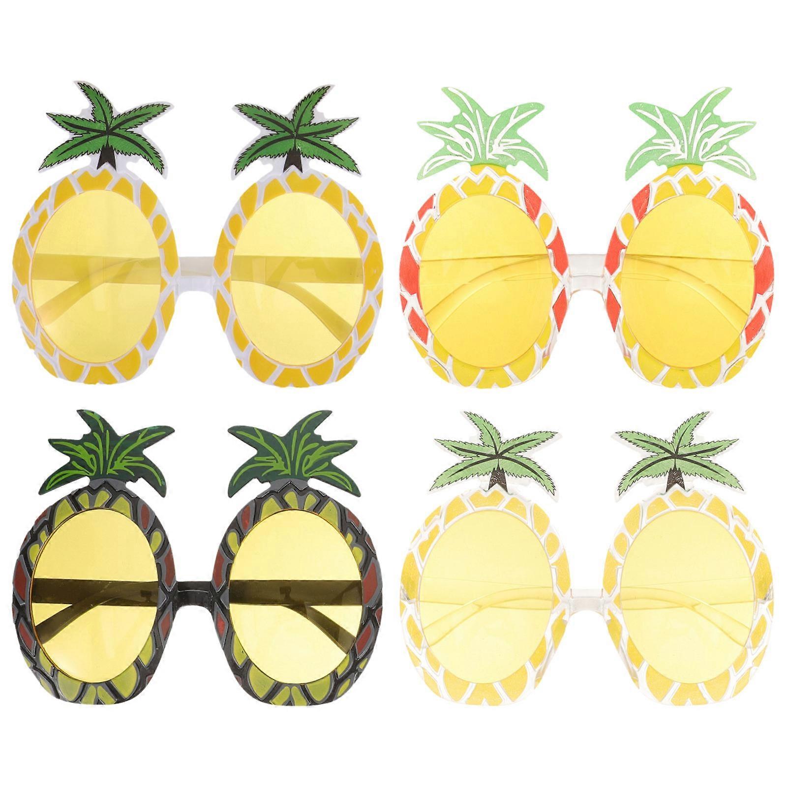 Pineapple Pattern Sunglasses Decoration For Hawaiian Party Young Adults Assorted Color Decoration 4Pcs