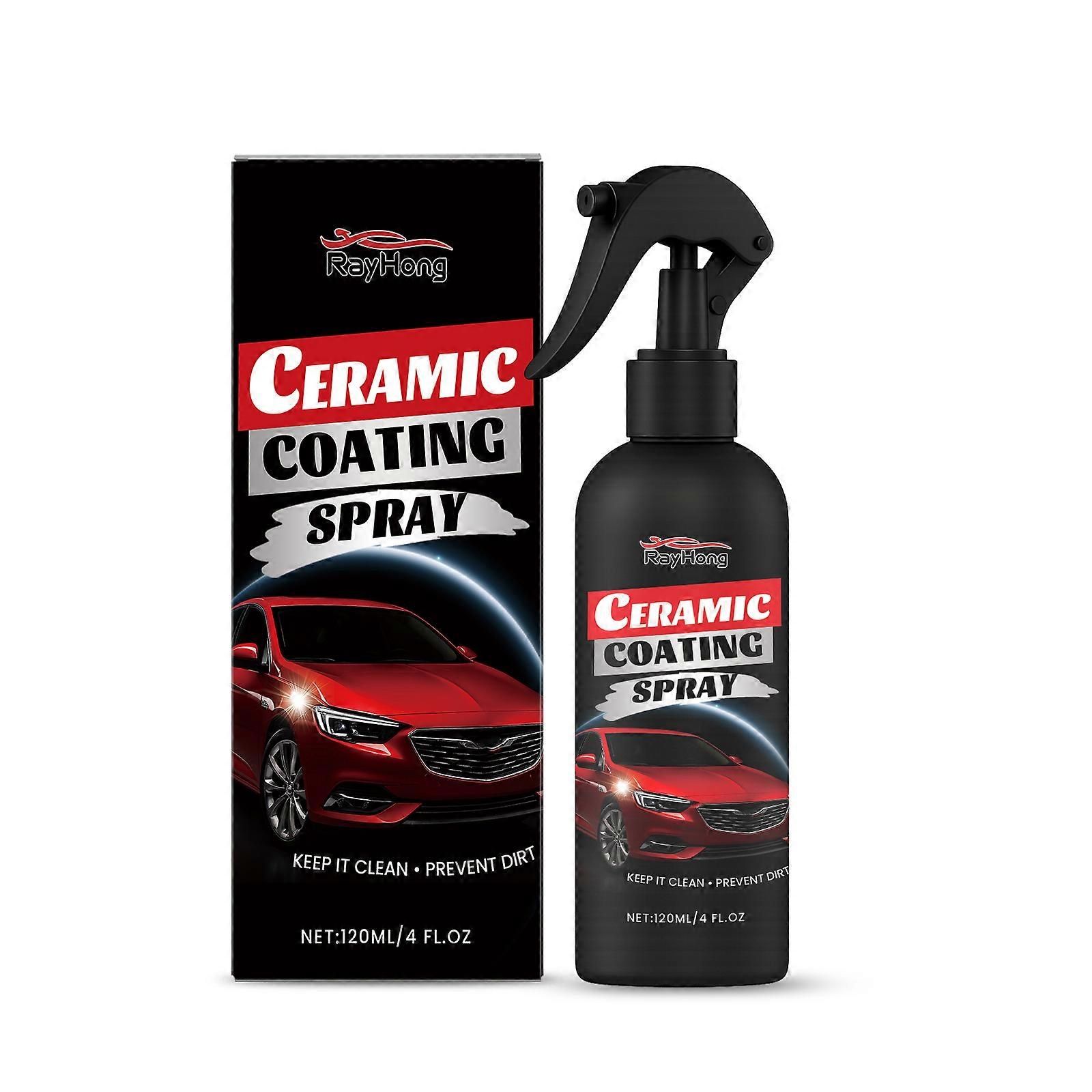 Automotive ceramic paint spray for paint restoration, maintenance, shine, cleaning, and stain prevention.