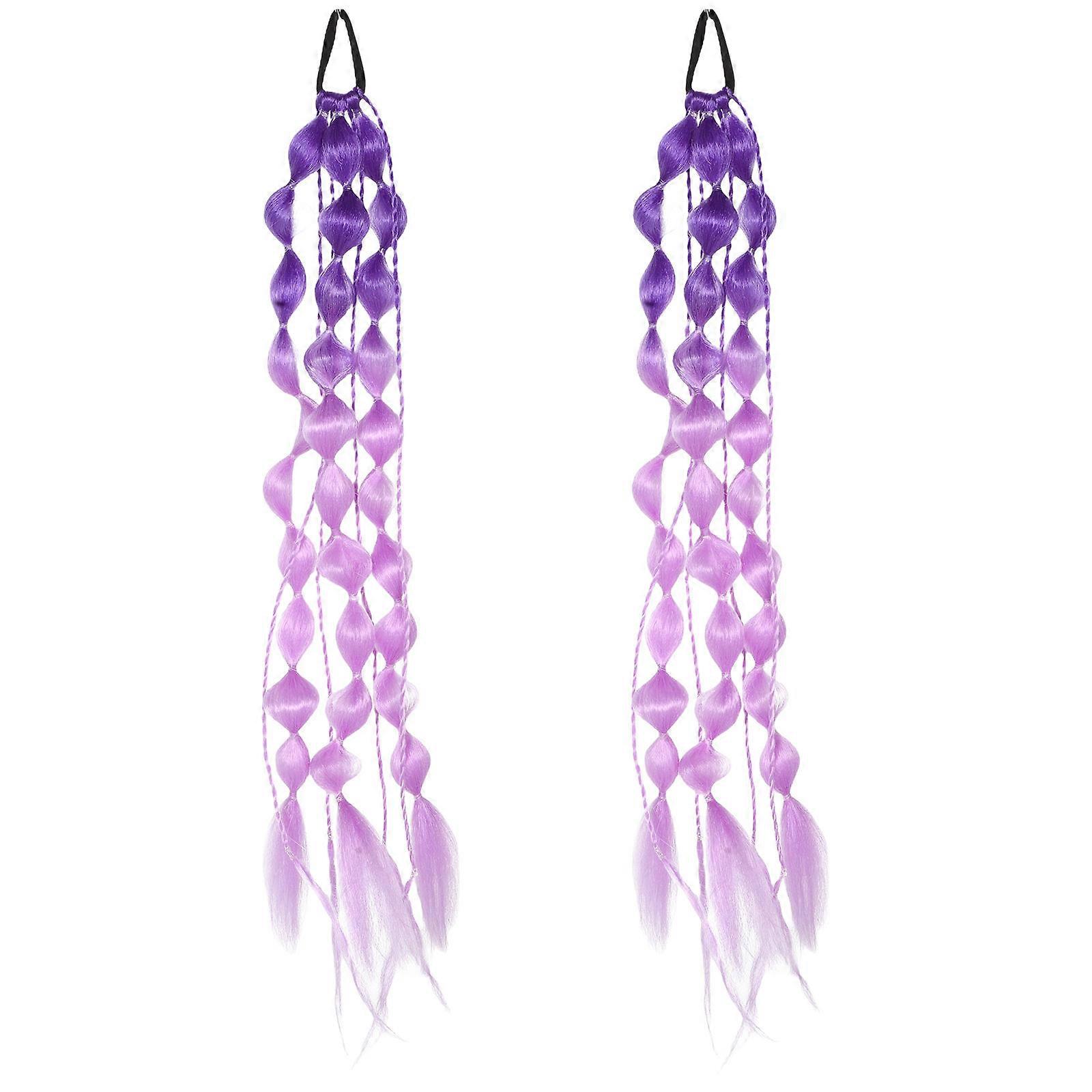 Colored Braided Ponytail Extension Wig for Child with 2Pcs Bubble Hair Tie