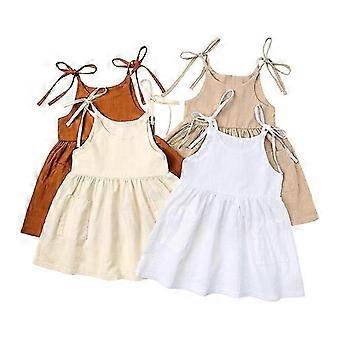 Toddler Girl Cotton Linen Dresses Bow Sling Beach Dress