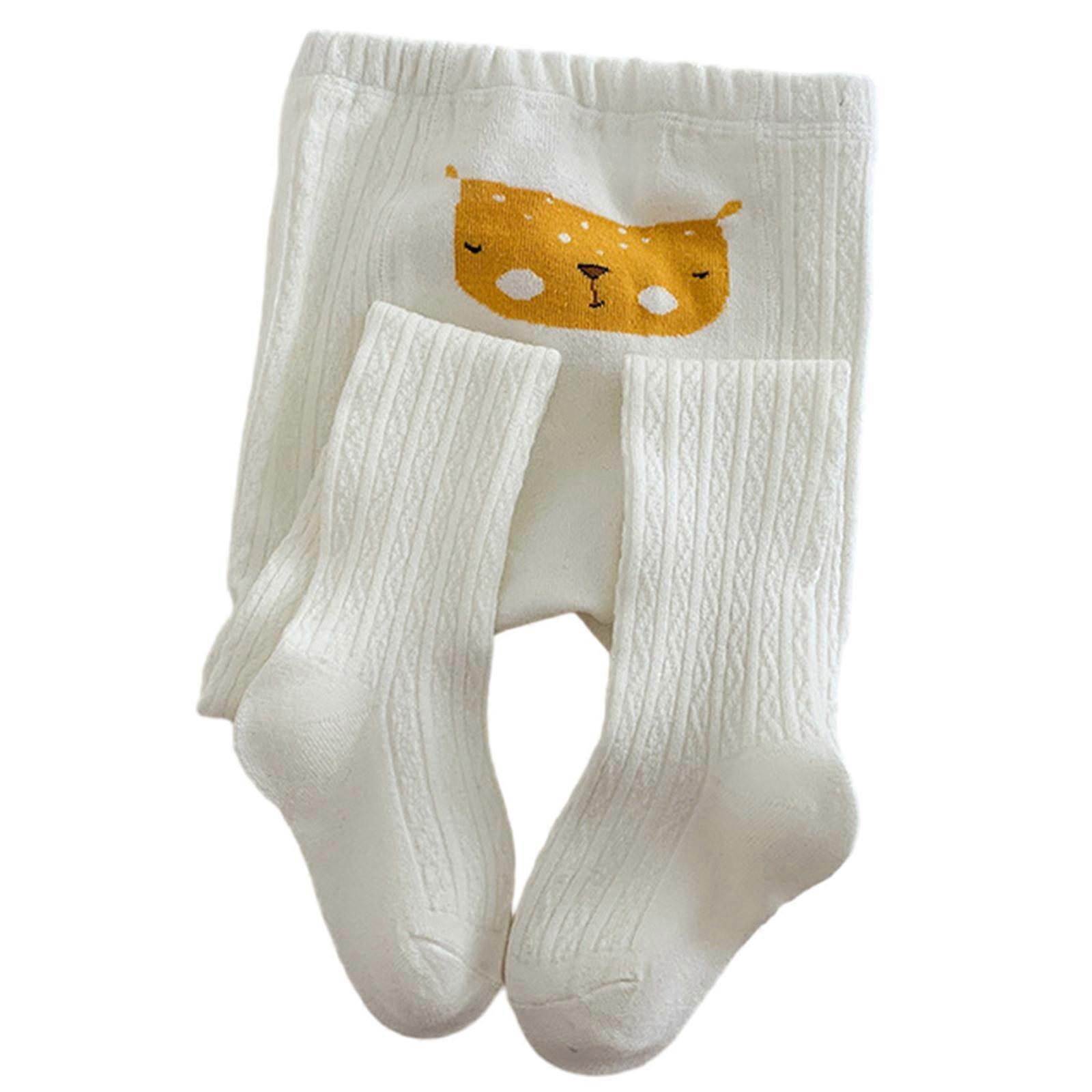 Toddler Leggings for Autumn Elastic Cartoon Pantyhose Spring Tights Warm Leggings Thermal Long Stockings for Baby Girls White S