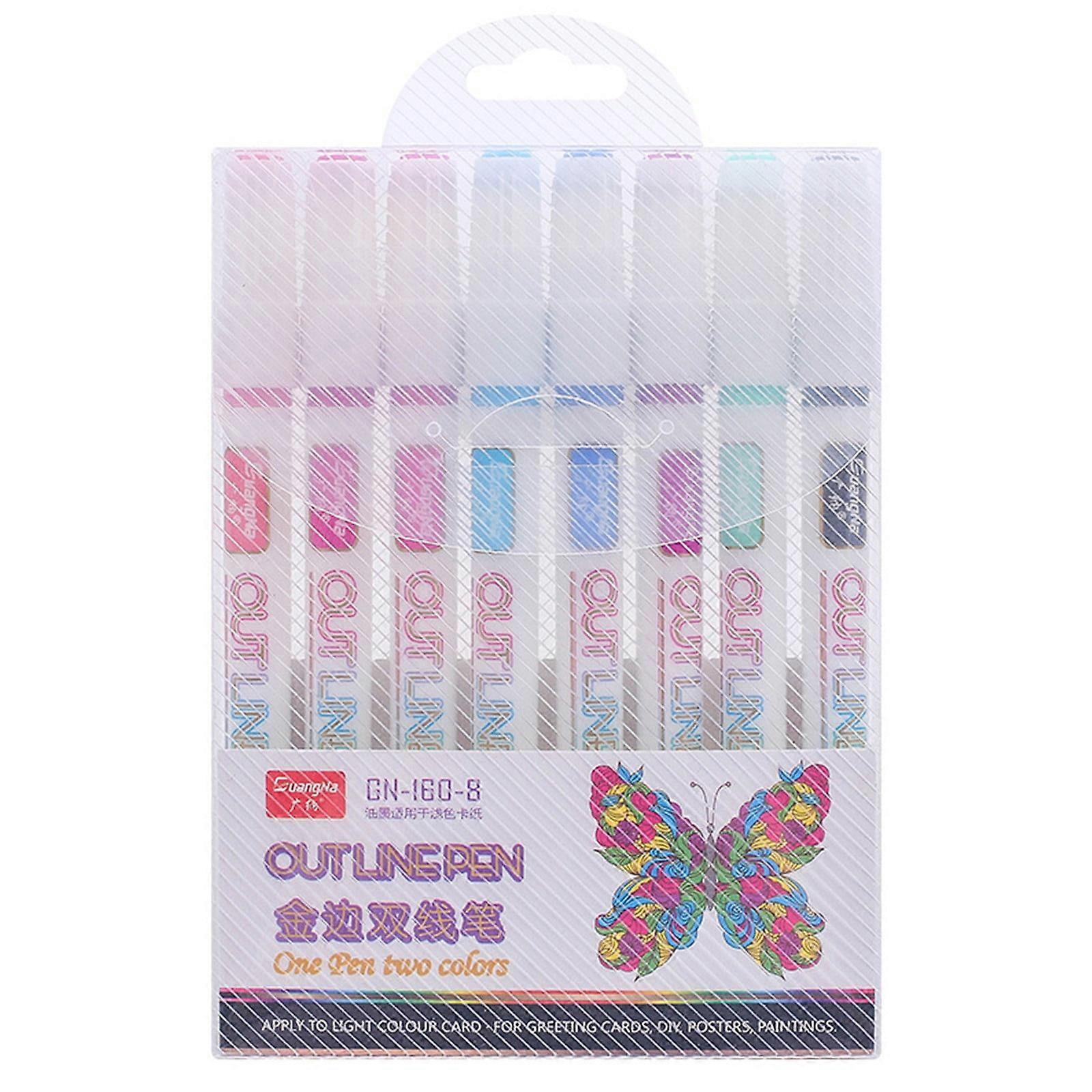 Begine Clearance GN160-8 Gold Edge Double Line Pen Set, 4ml Water-Based Metallic Marker, compatible with office & stationery use