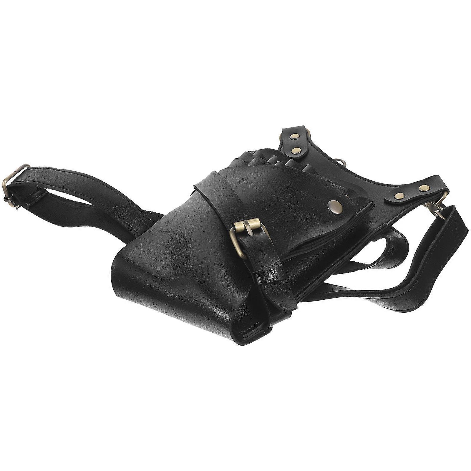 Black PU Multifunctional Hair Stylist Waist Bag for Scissors and Tools with Large Capacity 10.5 Inches
