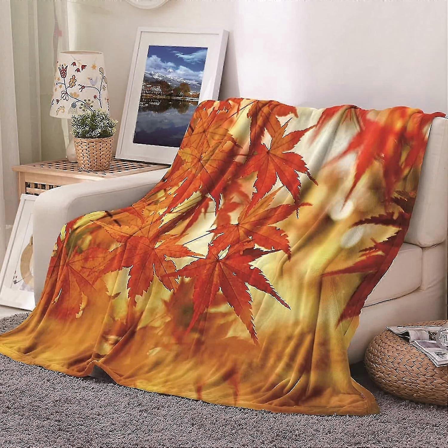 Blanket Queen Flannel Blanket For Bed,blanket Soft Autumn Theme Maple Trees Pattern Orange Blanket Throw 150x200cm
