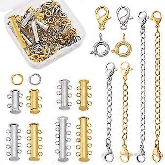 Brass Slide Lock Clasps Brass Magnetic Slide Lock Clasp Zinc Alloy Lobster Claw Clasps and 304 Stainless Steel Extender Chain