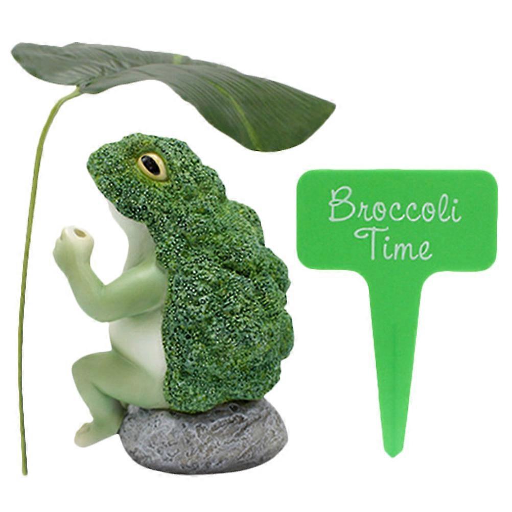 Broccoli Frog Statue Cute Frog Statue Countertop Decoration Green Resin 1 Set