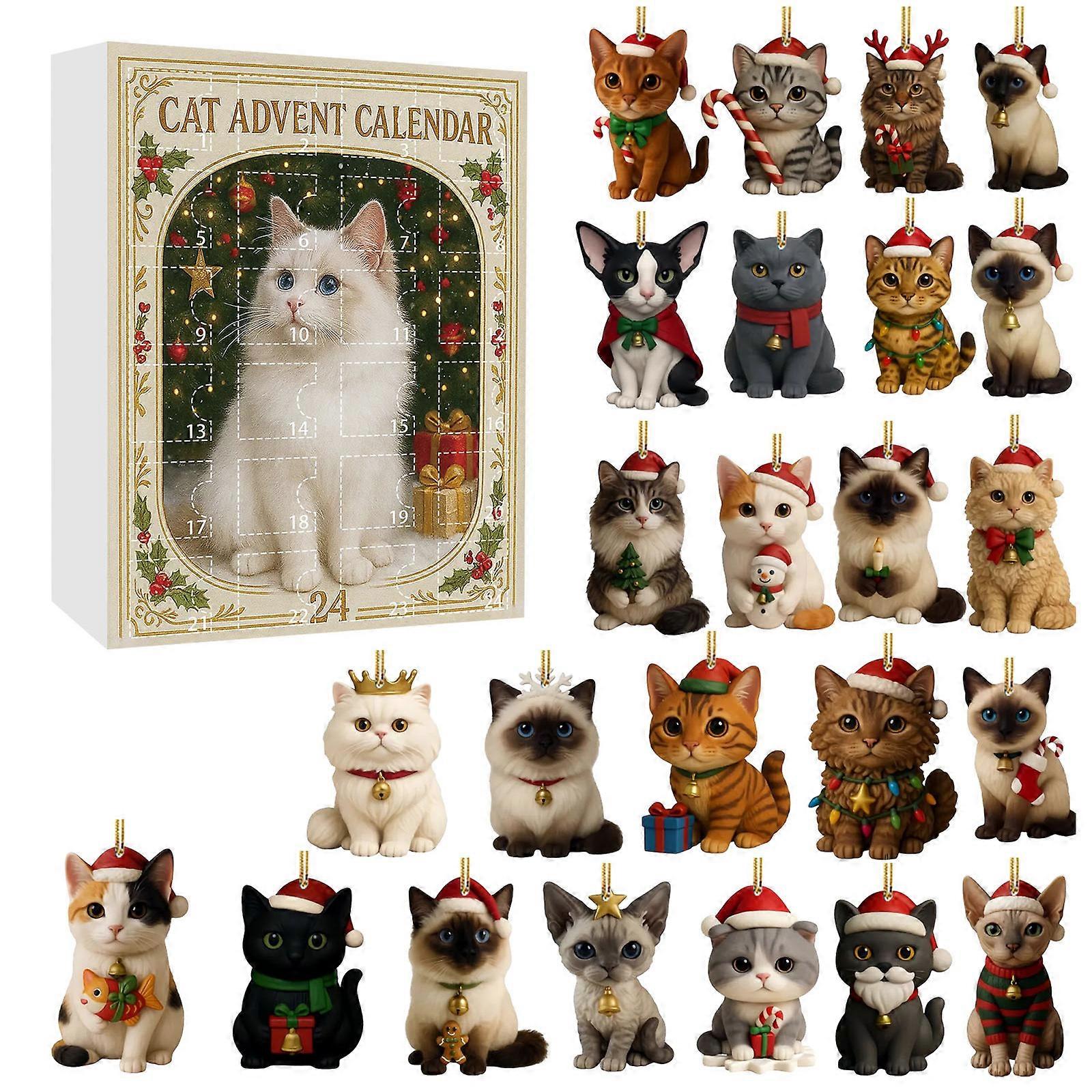 Cat Lovers 24 Days Christmas Advent Calendar Calendar 2D Acrylic Cat Dog Countdown Calendar Box Xmas Tree Pendent Ornament Gifts