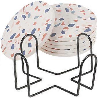 Ceramic Coaster Set With Holder For Bar Restaurant Heat-resistant Round Shape 3 Sets 10x10cm
