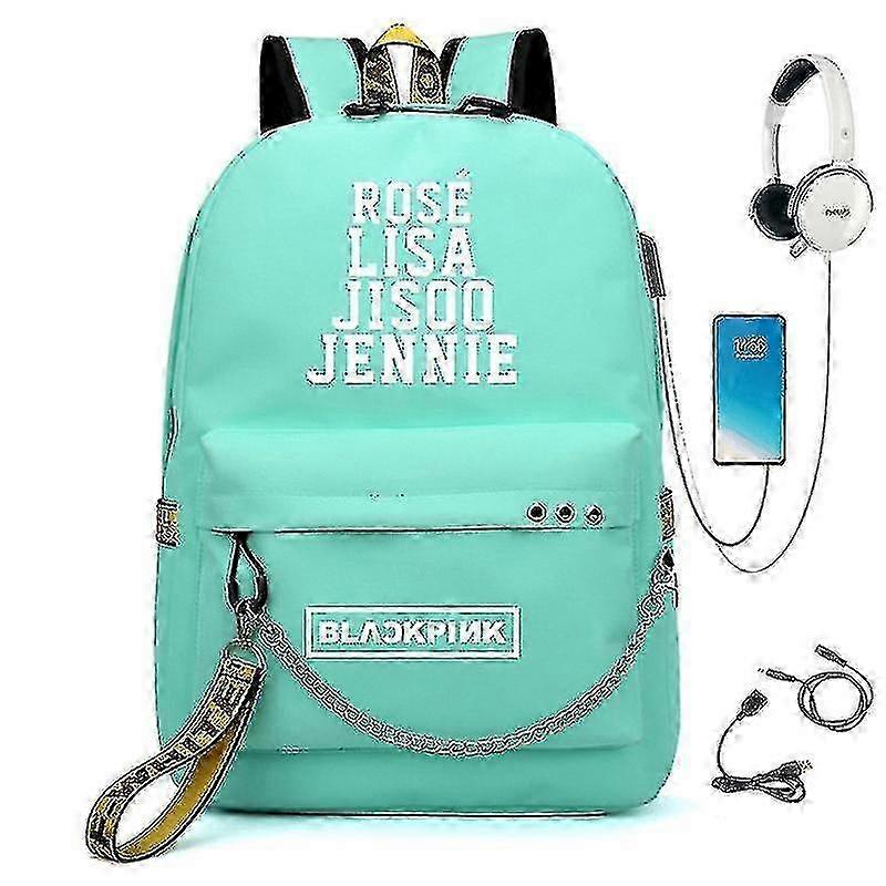 Black Pink Printed Usb Rechargeable Backpack Casual Student School Bag