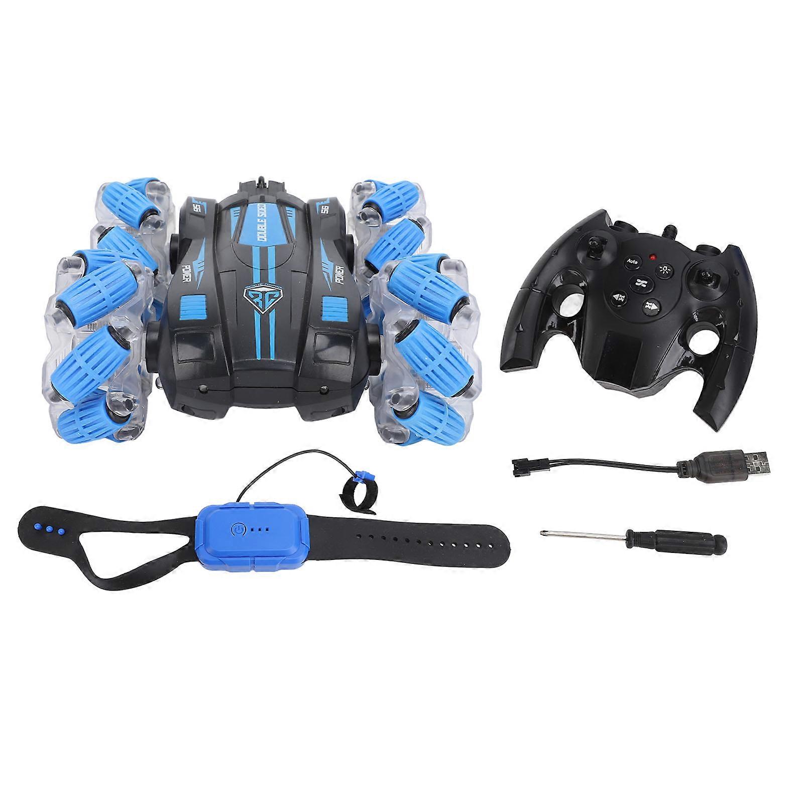 Children's Remote Control Car Double-Sided Stunt Hand Gesture Sensor Car 360° Rotation Drift Off-Road Vehicle Rechargeable Blue Durable Desig