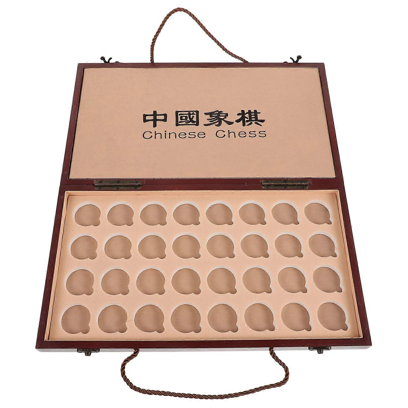 Our Portable Chinese Chess Set is designed for enthusiasts who appreciate fine craftsmanship. The hand-polished wooden pieces and board make a smooth playing experience. The convenient hand-carry box allows you to take your , whether it's a family gathering or a quiet afternoon in the park. Features -Color:Light Brown -Material:Wood -Size:44.50X40.00X2.50cm/17.49X15.72X0.98in -Durable wood construction: made from durable wood, this chess set is not only sturdy but also adds a touch of elegance to your game collection -Versatile storage and board: the box serves a dual purpose, acting as a storage unit for the chess pieces and unfolding into a fullsized chessboard -Easy to transport: designed with portability in mind, the handheld box makes it simple to take your , whether it's a park or a friend's house -Detailed artistry: the intricate design and fine craftsmanship make this set a beautiful addition to any game room or collection -Great for all levels: whether you're a novice or an expert, this set provides a great way to practice and enjoy chinese chess Package list: 1 x set of chess