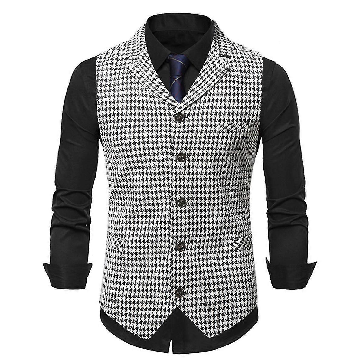 Cloudstyle Pánská ležérní Houndstooth jednořadá oblek vesta