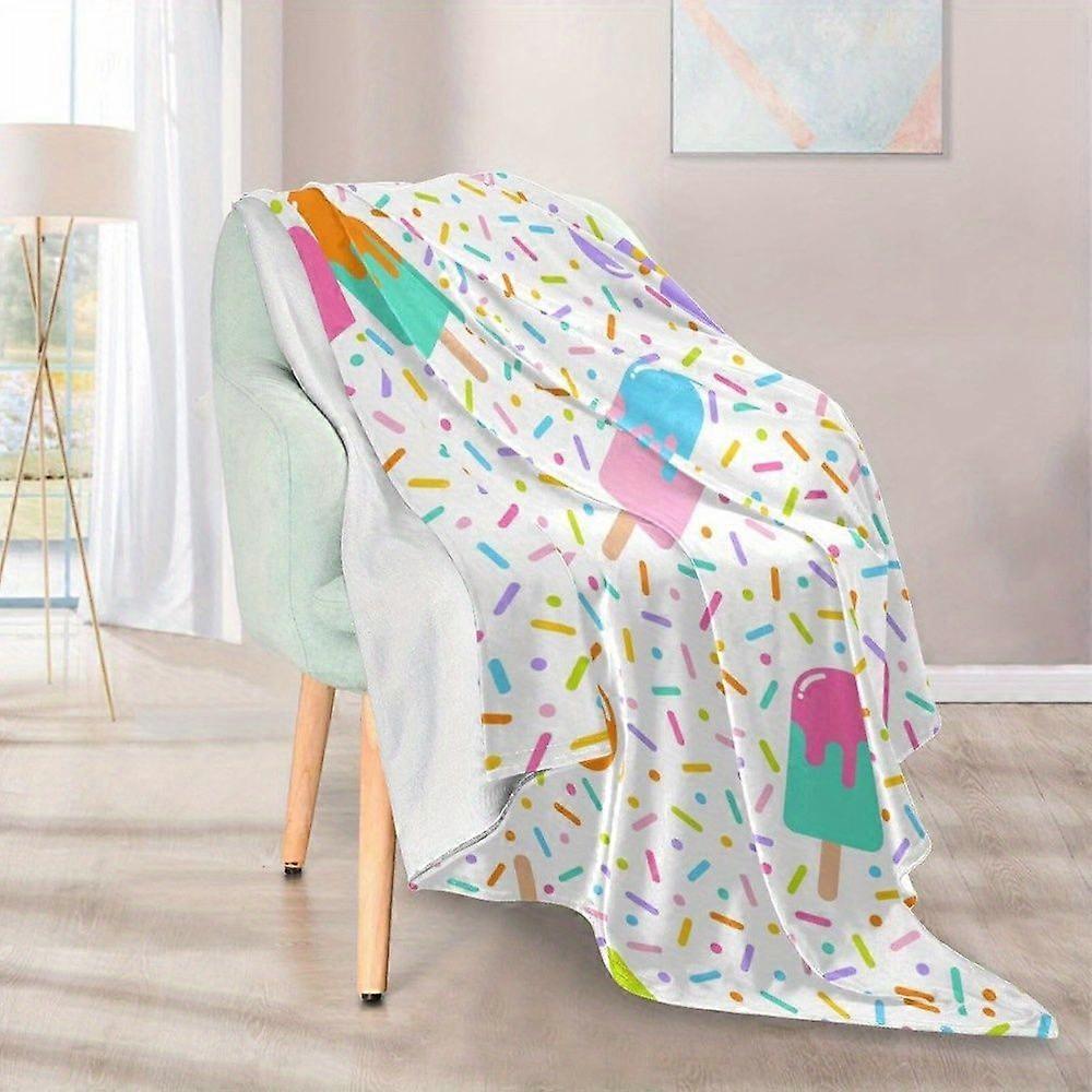 Colorful Popsicle Throw Blanket - Lightweight, Thin Polyester Fleece Blanket for Couch, Sofa, and Travel, Vibrant Ice Cr-pkjhg225