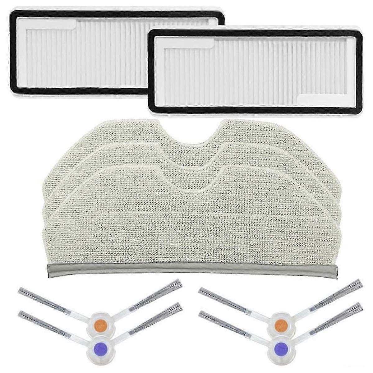 brand and high quality Made of high-quality materials, more durable Side brush allows your vacuum cleaner to reach deeper into the carpet compatible a more thorough cleaning Filter filters fine dust to reduce dust, pollen and other allergens from penetrating into the air you breathe. As part of normal maintenance, it can be easily removed and replaced It is best to replace spare parts every 2 to 3 months to keep the machine running at its best per compatiblemance. : Material:Plastic Package Contents: 4 * side brush 2 * hepa filter 3 * mop cloth Only the above package content, other products are not included. Note: Light reflection and different displays may cause the color of the item in the picture a little different from the real thing. The measurement allowed error is +/- 1-3cm.