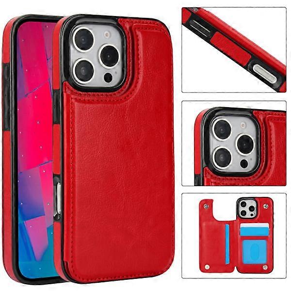 Compatible with iPhone 16 Pro Max - NKOBEE Stylish Practical Wallet Case Red