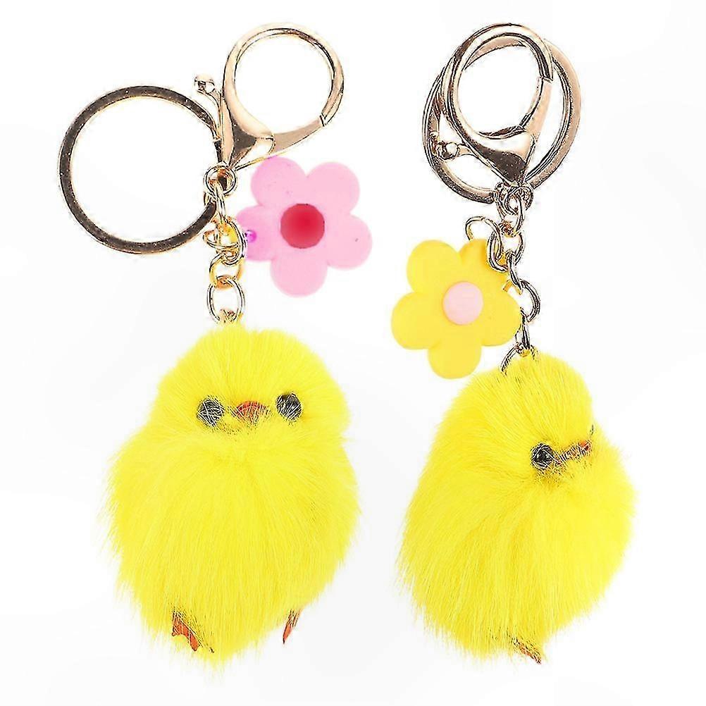 Cute Yellow Chick Keychain with Flower Design Soft Plush Accessory for Bags and Keys