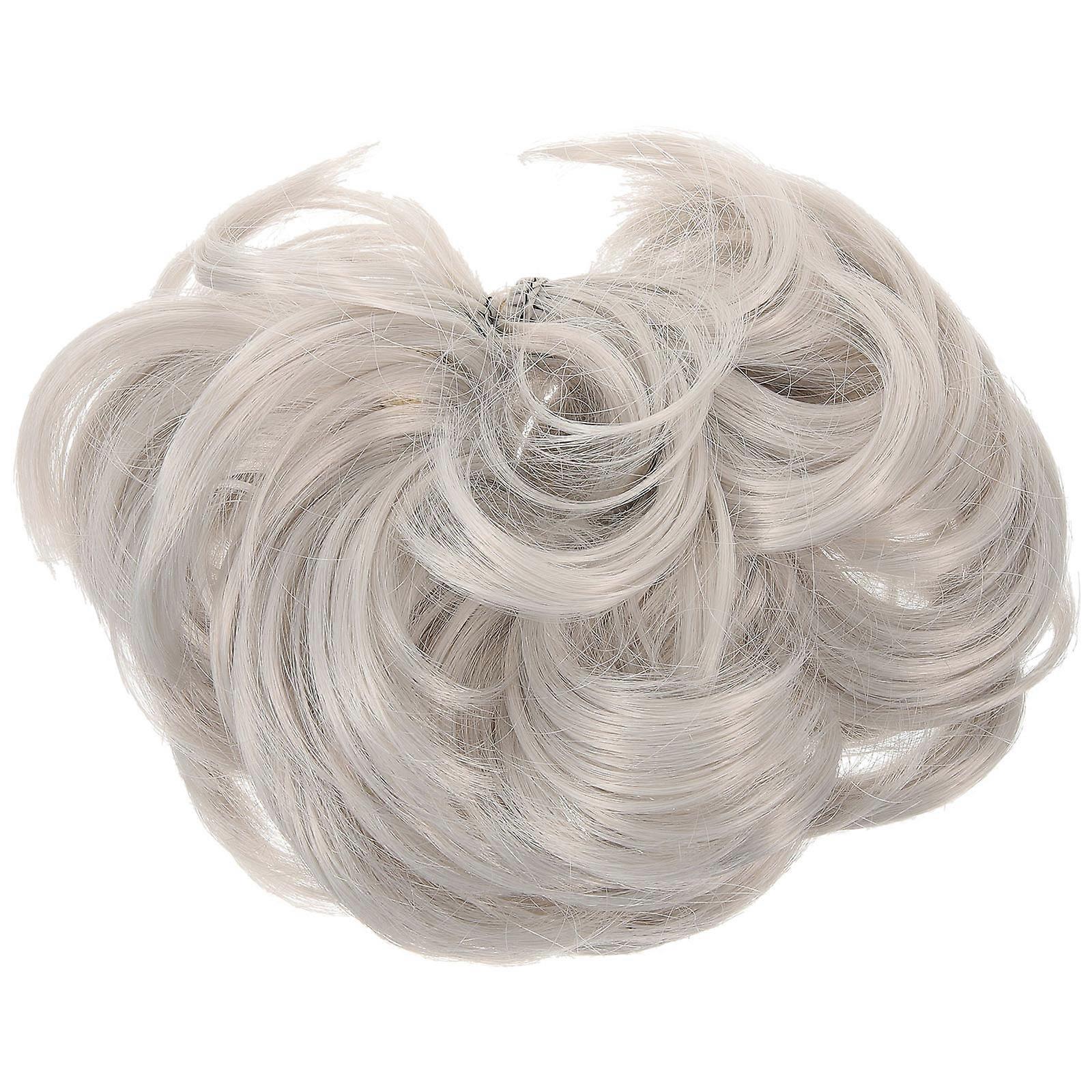 Ladies Fashion Ponytail Hair Extension Bun Scrunchie Elastic Curly Synthetic Hairpieces 2pcs (Grey)