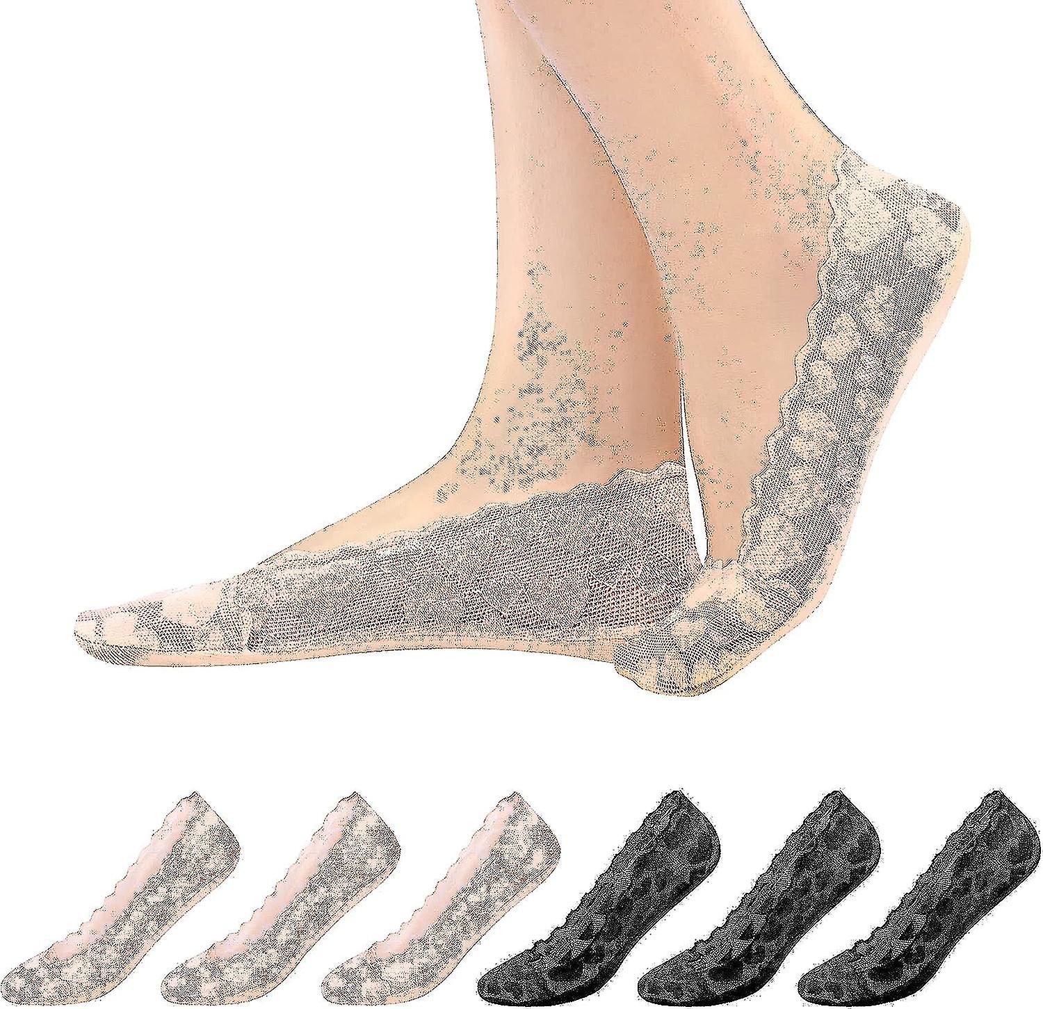 Women - 6 Pairs Non Slip Lace Invisible Socks, Lace Socks Women Shoe Liners