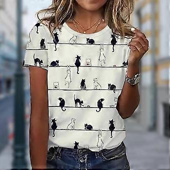 Dámské letní tričko s potiskem a minimalistickým designem s kotětem a krátkým rukávem, ležérní tištěné topy