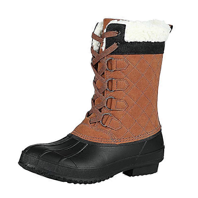 Women's Casual Lace-up Waterproof Mid-calf Cotton Boots High-top Fleece Snow Shoes