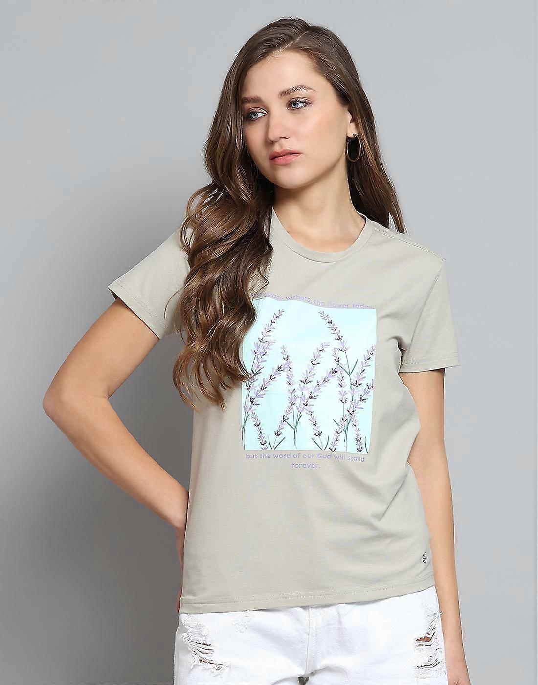 Monte Carlo Womens Printed Grey Round Neck Half Sleeve Top