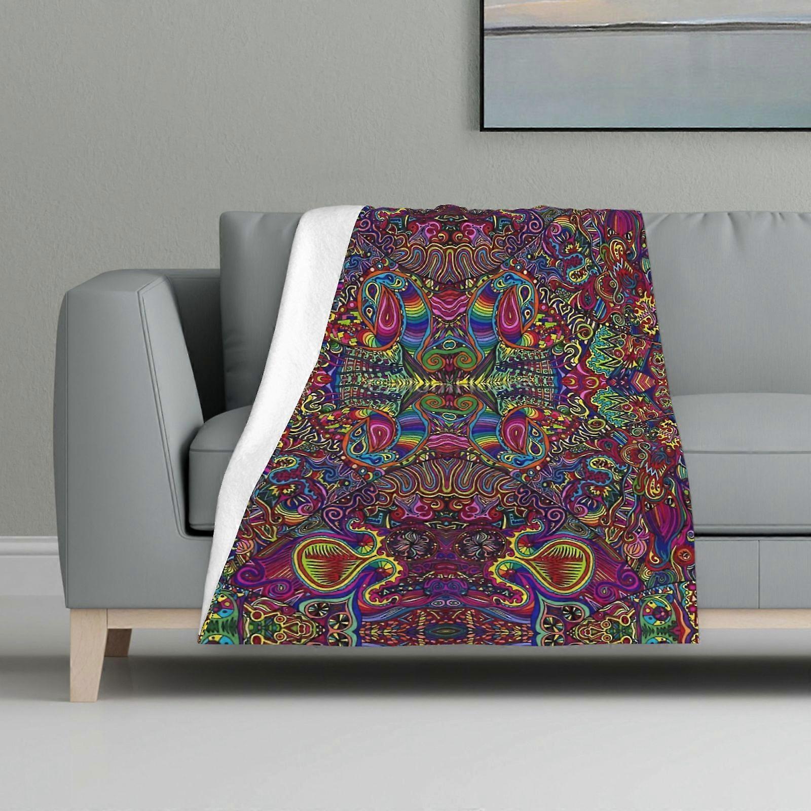 Blanket Multicolour Printed Blanket Super Soft Flannel Lightweight Fluffy Plush Bed Blanket Psychedelic Abstract Colourful Work