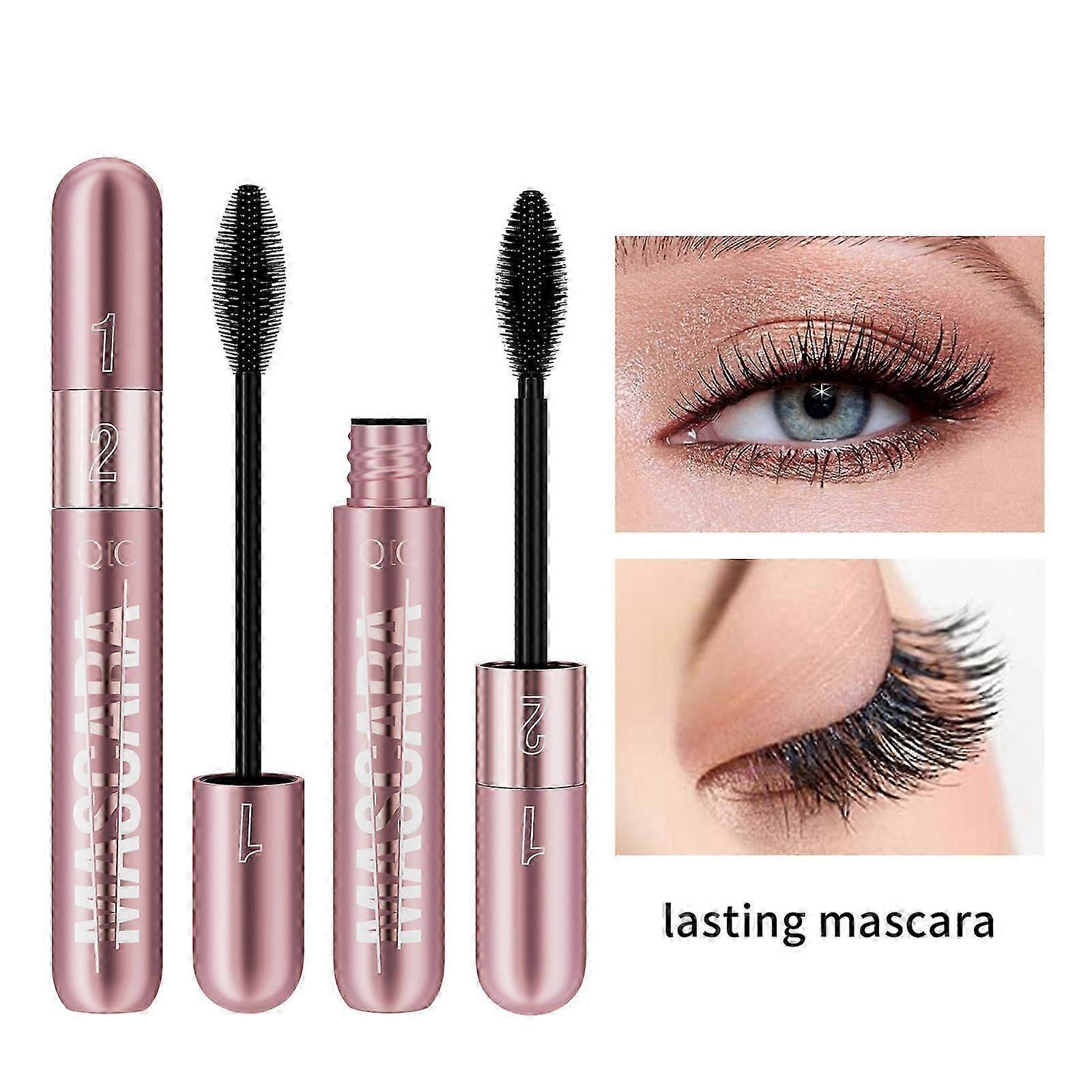 2 in 1 Longer Waterproof Mascara, Lash Cosmetics 4D Silk Mascara, No Clumping, Long-lasting Black Mascara, Step 1 and Step 2 use Mascara