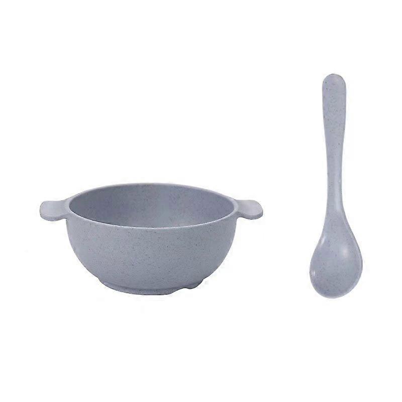 Children's Bowl With Children's Spoon /Made of Natural Wheat Straw / Light and Drop-Proof / Safe and Environmentally Friendly, Color: Blue