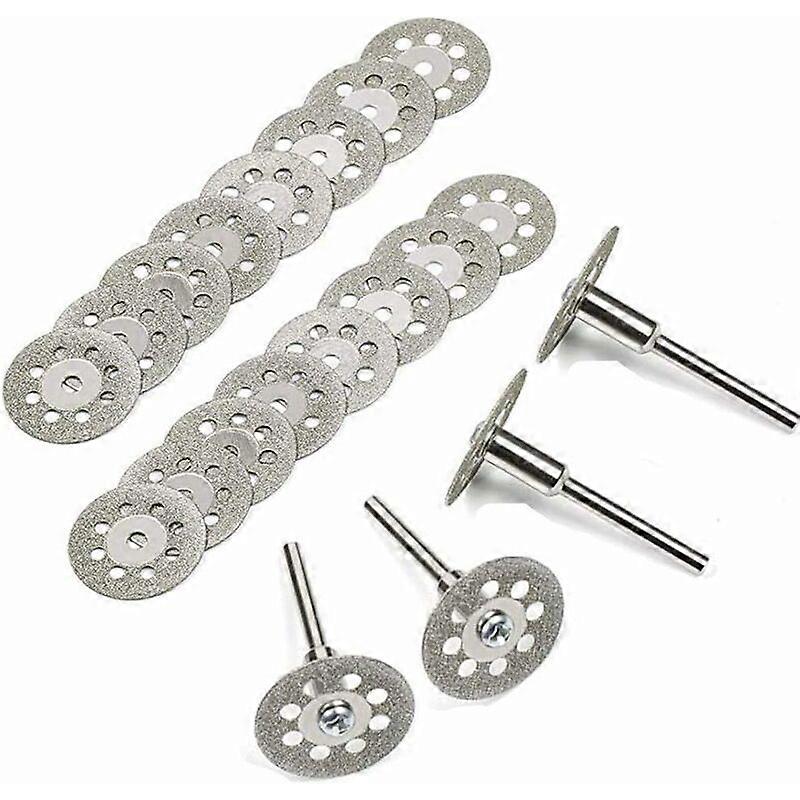 good Diamond Cutting Disc, 20Pcs 22mm Diamond Cutting Disc Mini Cutting Discs with 4Pcs Mandrels Shanks for Rotary Discs for Dremel Rotary Tools Glass
