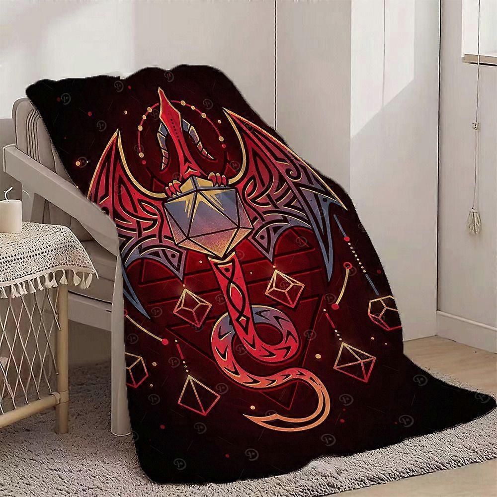 Dragon & D20 Dice Art Print Flannel Blanket - Soft, All-Season, Portable, Hypoallergenic, Tear-Resistant, Ideal for Sofa-POIUY407