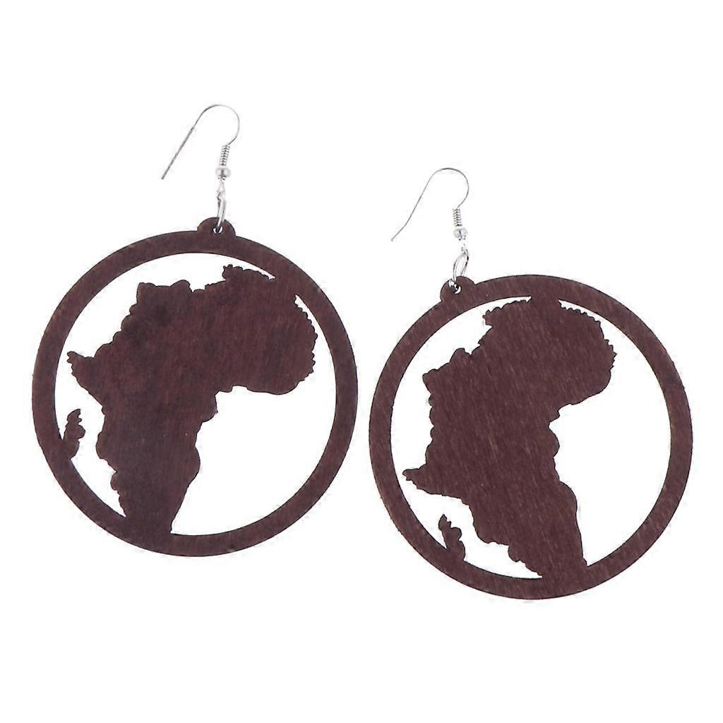 Wooden African Map Dangle Earrings Fashion Exaggerate Round Wood Hollow Earrings