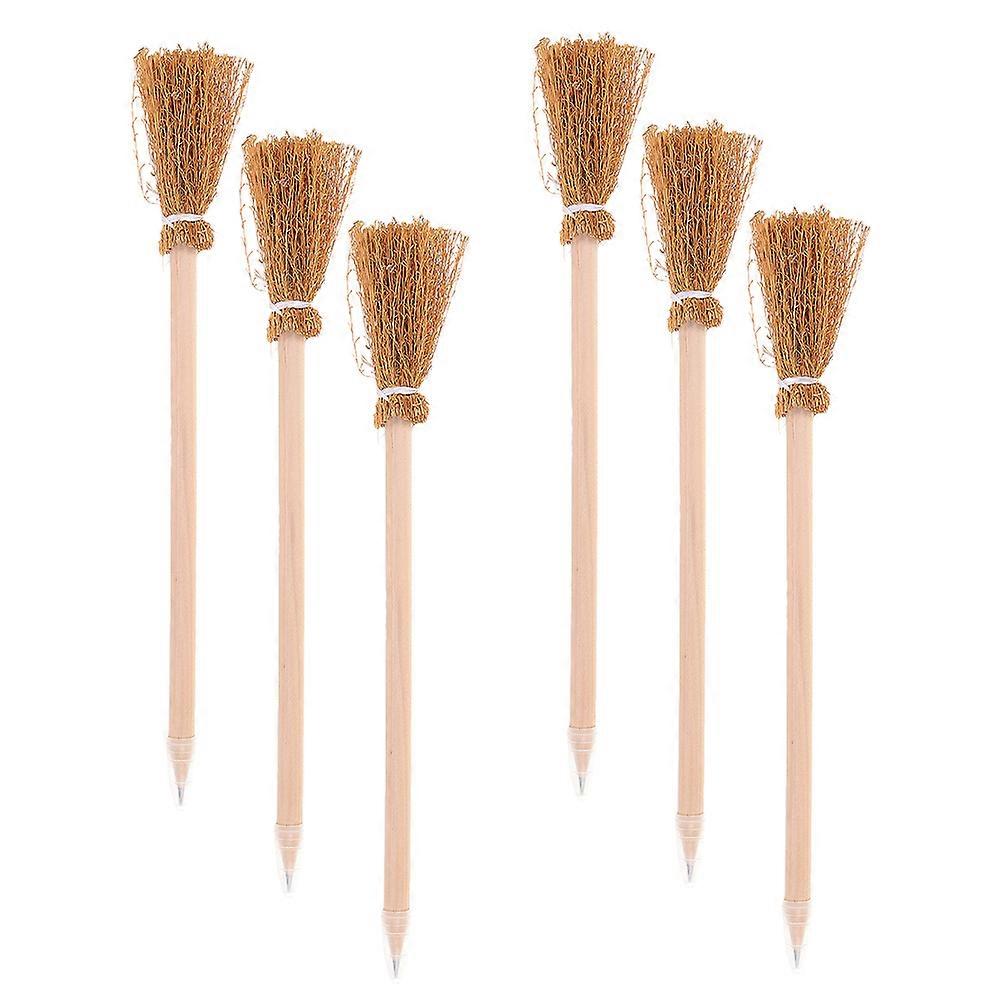 Witch Broom Pencil Wooden Writing Instrument 6Pcs for Home Use