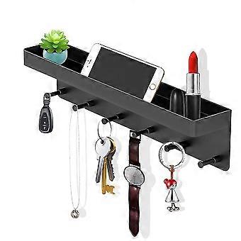 Key Holder With Shelf, 6 Hooks, Self-adhesive Key Organizer Black