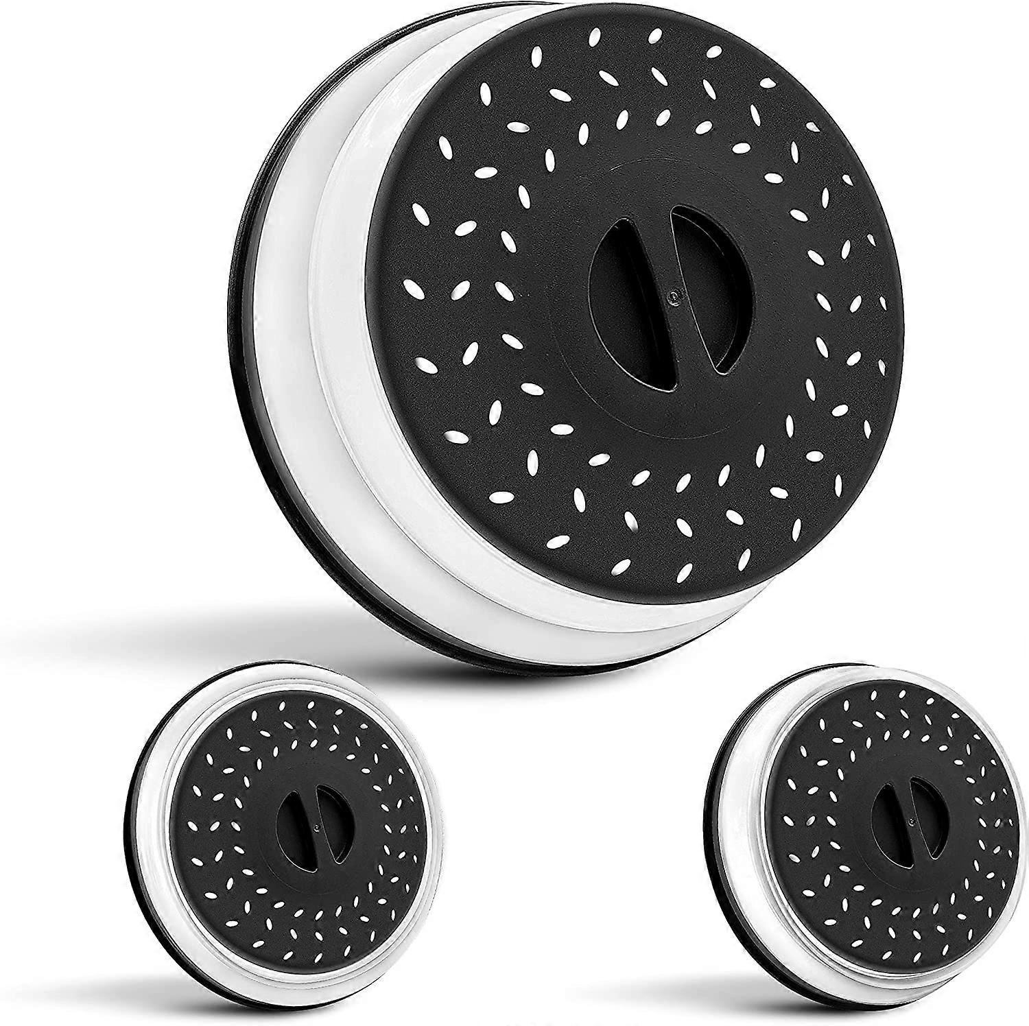 Dww- Couvercle pliable pour micro-ondes 3 pices - Noir - Couvercle en silicone rtractable et gouttoir vapeur pour assiettes, bols allant au micro-ond