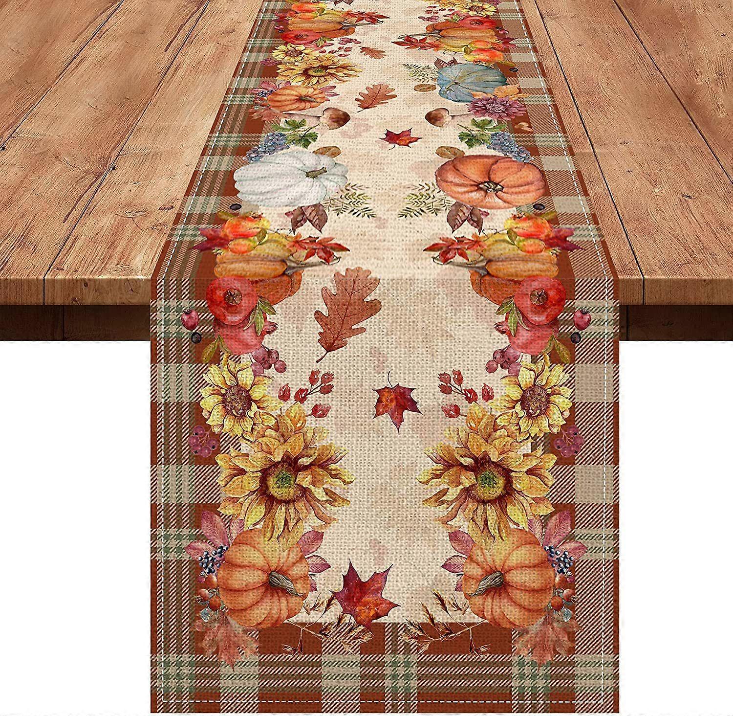 Pumpkin Autumn Cat Linen Table Runner Kitchen Dining Indoor and Outdoor Home