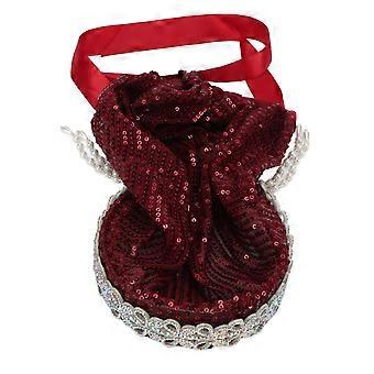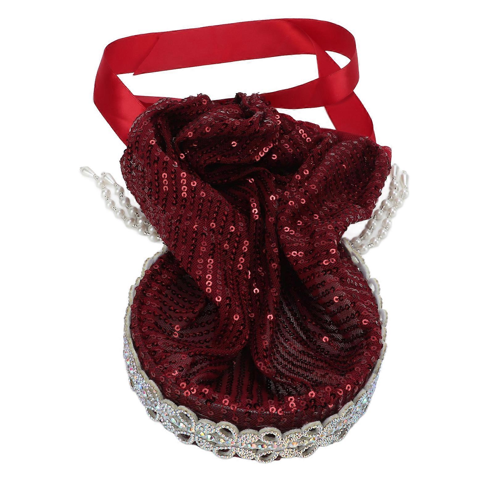 Elegant Wine Red Elastic Hijab with Rhinestones Bow Headband