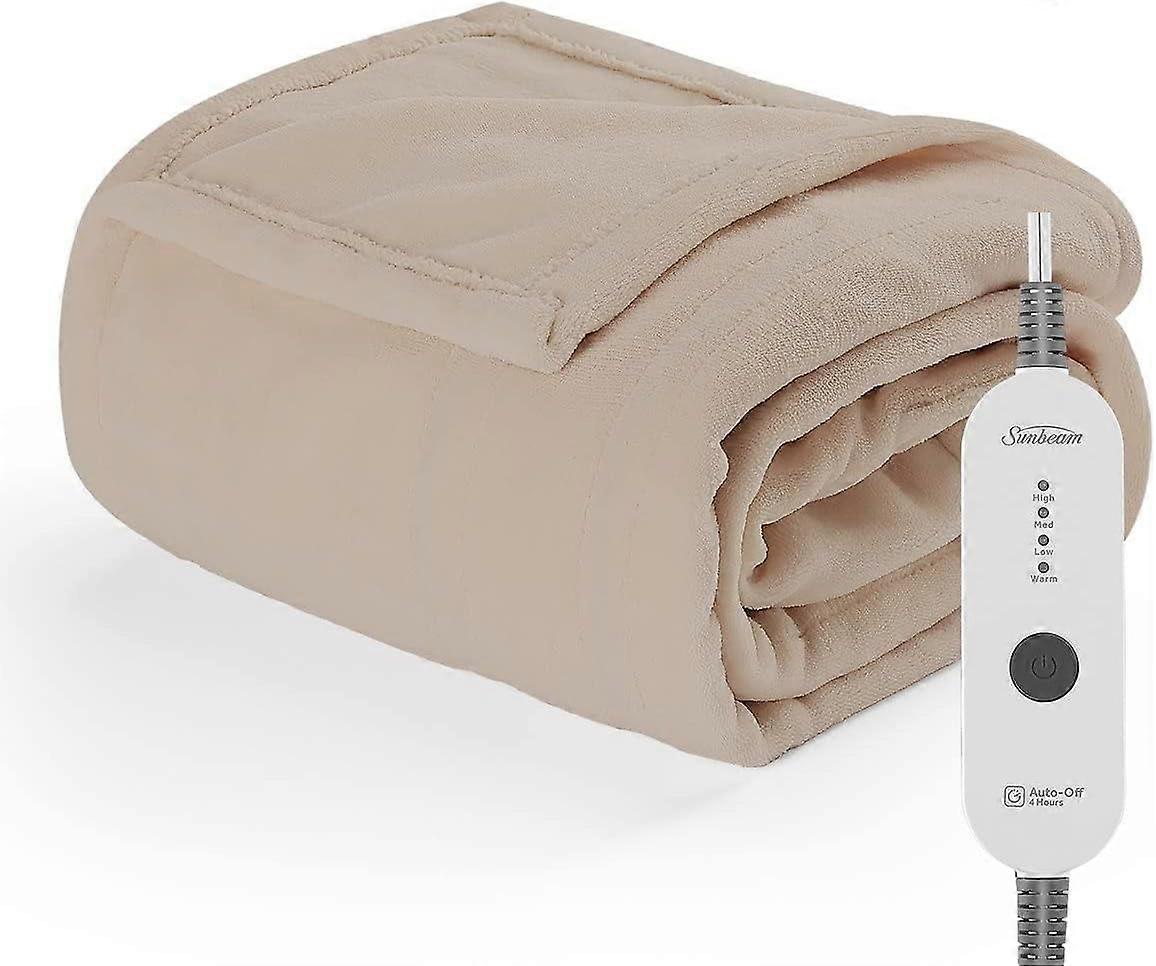 Electric Heated Throw Blanket, Nordic Premium Plush with 4 Heat Settings, Auto Shut-Off, Machine Washable, UL Certified (Mushroom Beige)