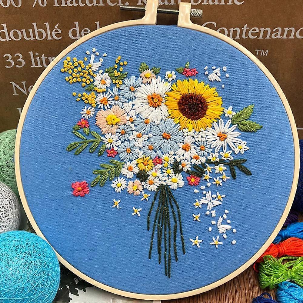 Embroidery Starter Kit with Pattern, Full Range of Stamped Embroidery Kit Including Fabric, Bamboo Hoops, Color Threads and Tools