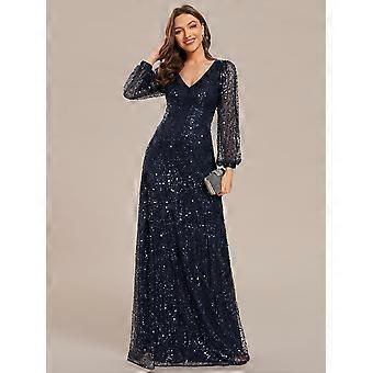 Ever-Pretty Women's Elegant V-Neck Lantern Long Sleeve Sequin Guest Dress A-Line Evening Dress