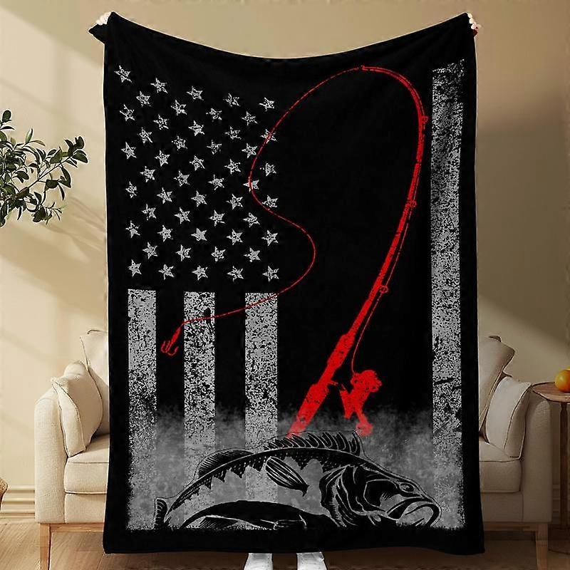 Fishing Enthusiast Pattern Blanket, 1 Count Soft Warm Throw Blanket, Air-conditioned Room Blanket, Warm Nap Blanket for Home Office Travel