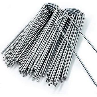 Galvanized Steel Fixing Pins (50pcs) - Strong Fixing of Staples for Ground Cover Fabric, Netting and Mesh - 150mm Long, 30mm Wide, Ø 3mm